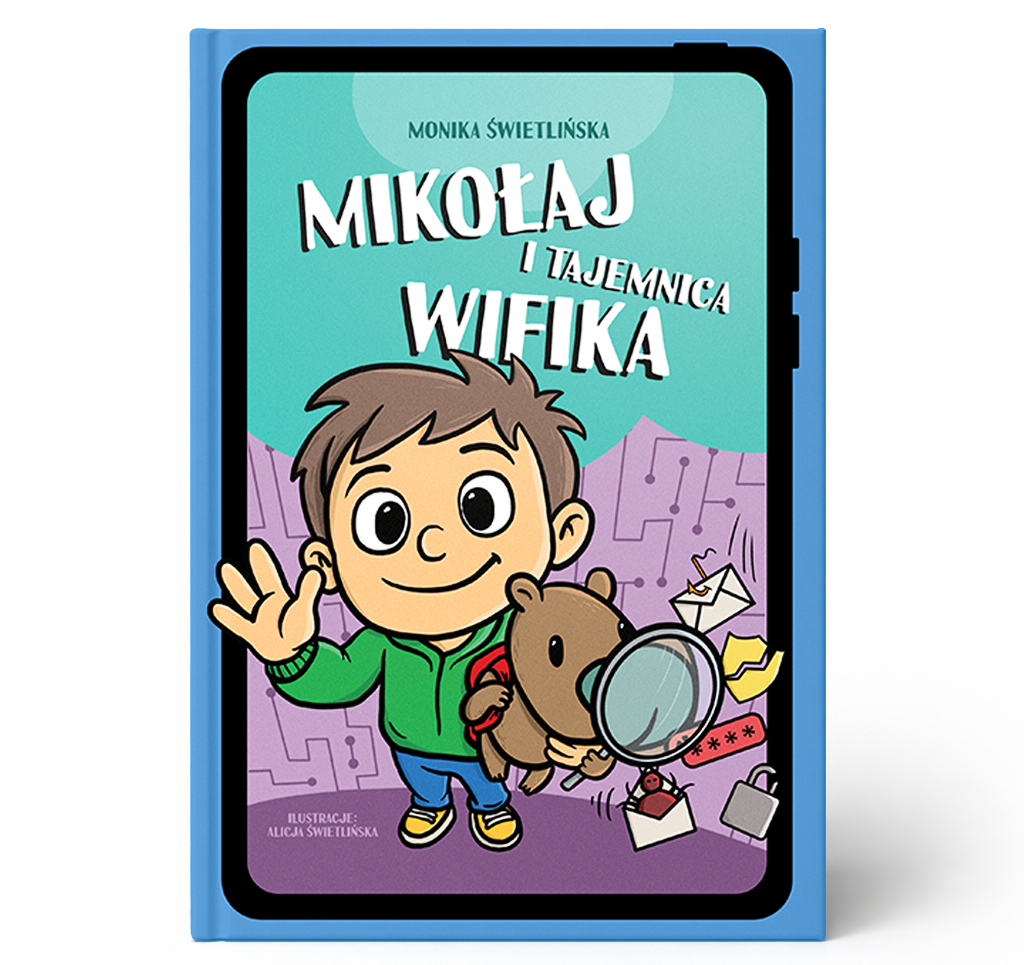Mikołaj ma 7 lat i robi to, co Twoje dziecko: gra online, ogląda bajki na tablecie, odbiera telefon babci. Pewnego dnia klika w reklamę, poznaje „kolegę”, który prosi o hasło, odbiera SPAM. Na szczęście ma Wifika, pluszową kapibarę, która pomaga reagować: spokojnie, mądrze, bez strachu.
